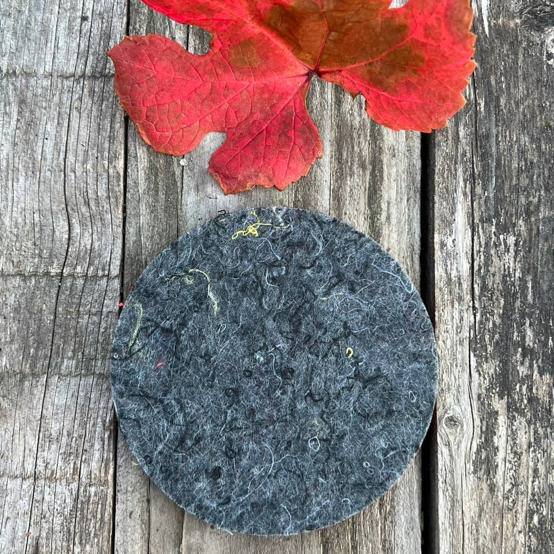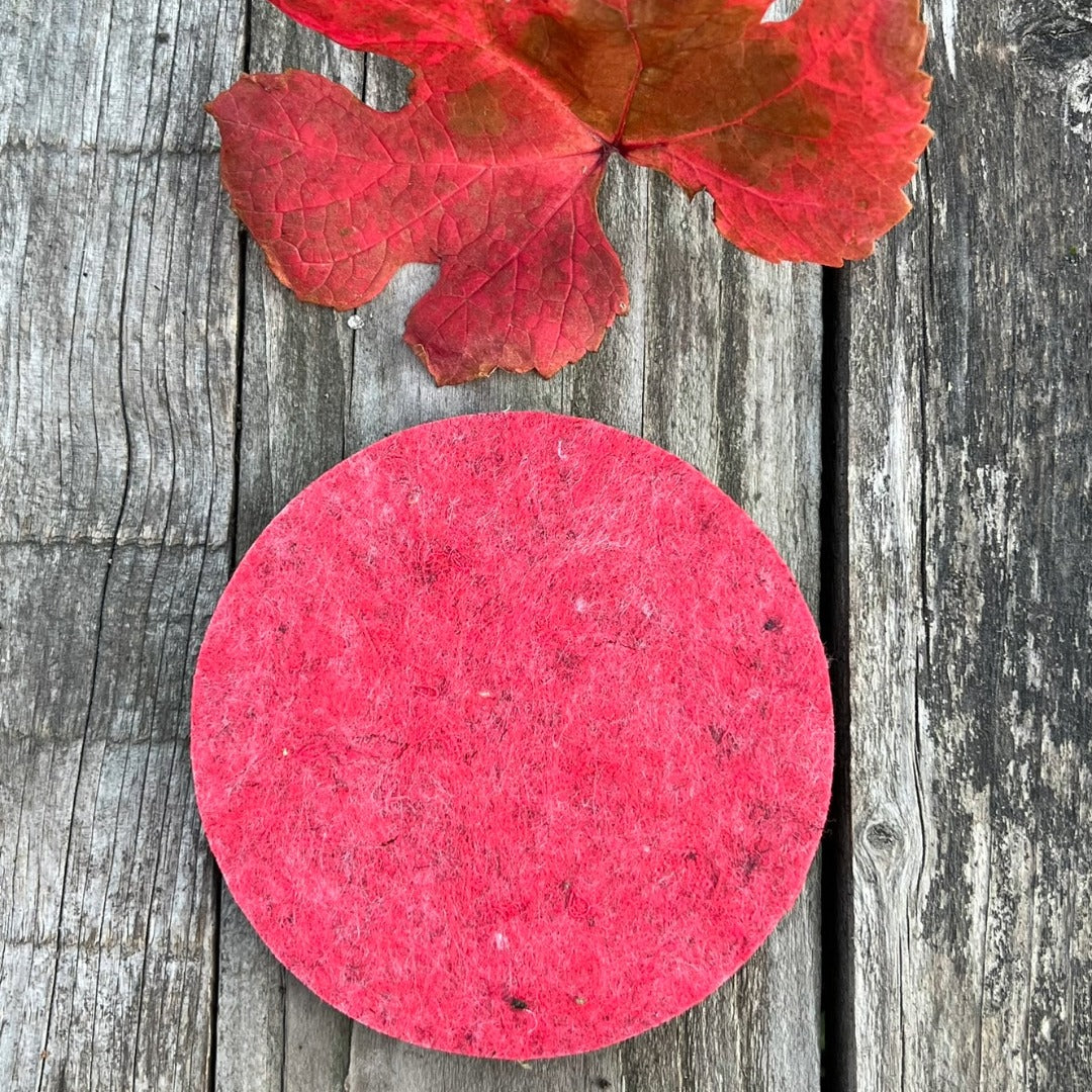 Tyylikäs ja kestävä lasinalunen, joka on valmistettu kierrätyskuidusta, jokaisella alusella on oma tarinansa. Musta ja punainen huopa on tehty käytöstä poistetuista palvelu-alan työvaatteista.