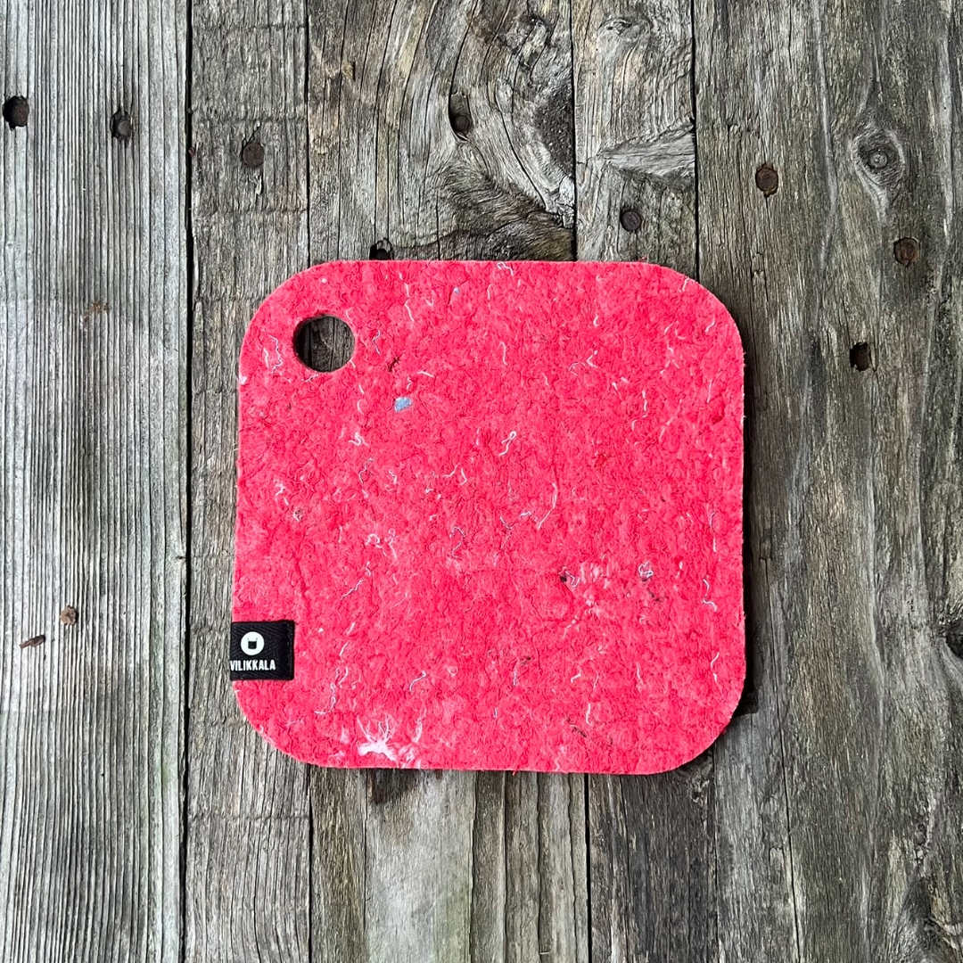Tämä vastuullinen pannunalunen on valmistettu poistotekstiilihuovasta ja antaa uuden elämän käytöstä poistetuille työvaatteille.