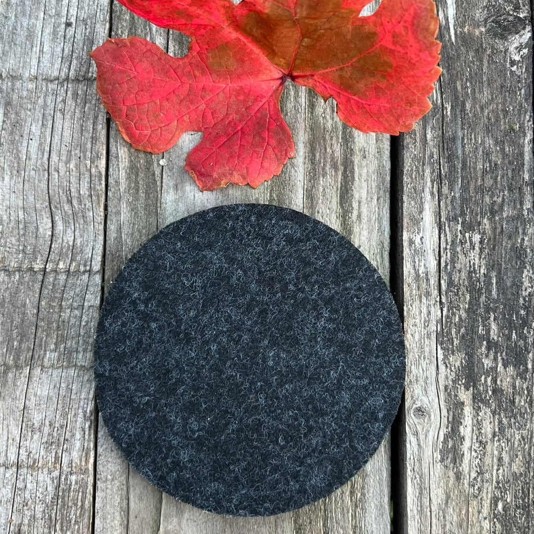 Tyylikäs ja kestävä lasinalunen, joka on valmistettu kierrätyskuidusta, jokaisella alusella on oma tarinansa. Turkoosin värinen huopa on tehty käytöstä poistetuista puhdastila työvaatteista ja grafiitinvärinen huopa kierrätetystä pet-muovista, kuten muovipulloista.